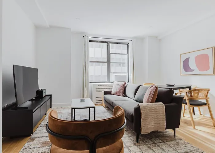 Situé à 10 minutes à pied de la station de métro Grand Central - 42nd Street, Appartement Blueground Midtown gym AC nr Chrysler NYC-1665 de 72 m² bénéficie également de la proximité de la Non-violence. L'accès à des cours de fitness permet aux clients d'ajouter de la variété à leurs loisirs.